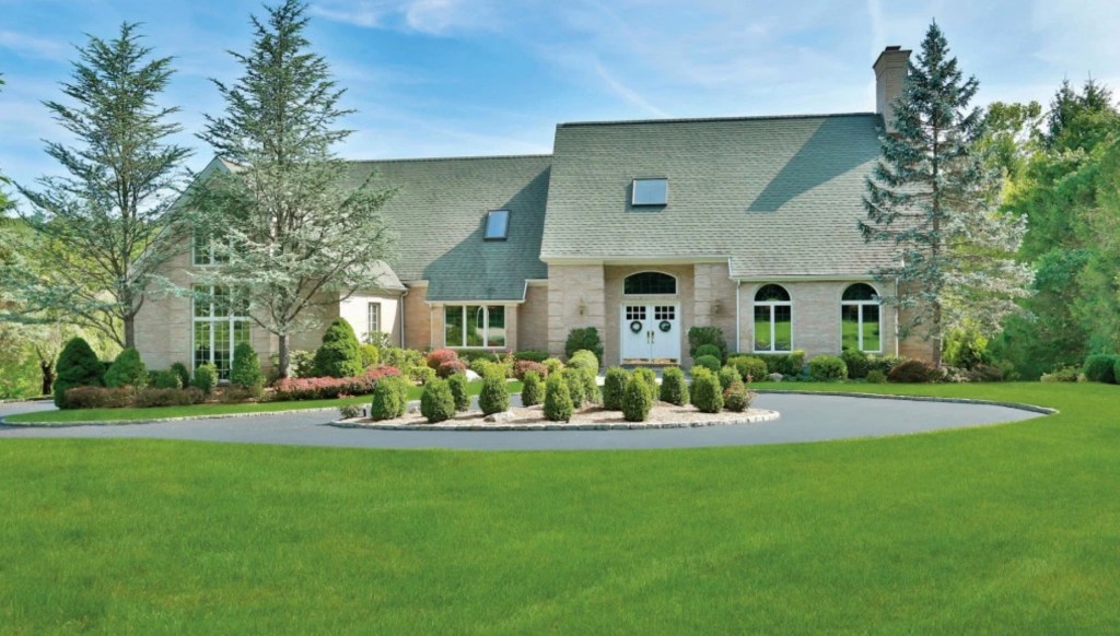 The custom-built, French Normandy-style colonial is 6,110 square feet and sits on 1.94 acres.