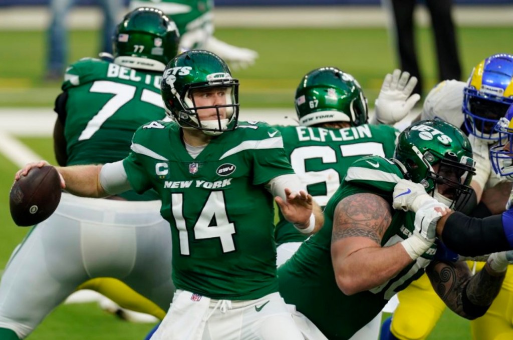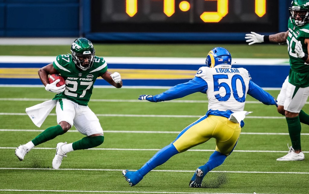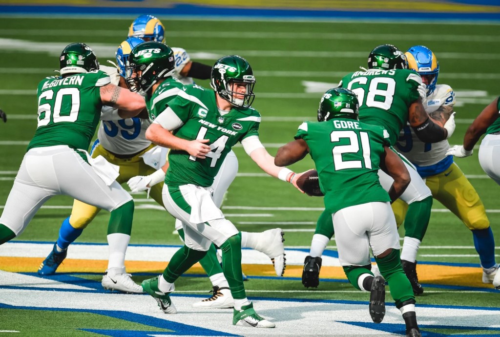 New York threatened to blow a big advantage, allowing the Rams to rally late from a 20-3 deficit. But the Jets held on late in the fourth quarter and knelt in victory formation for the first time in 2020.