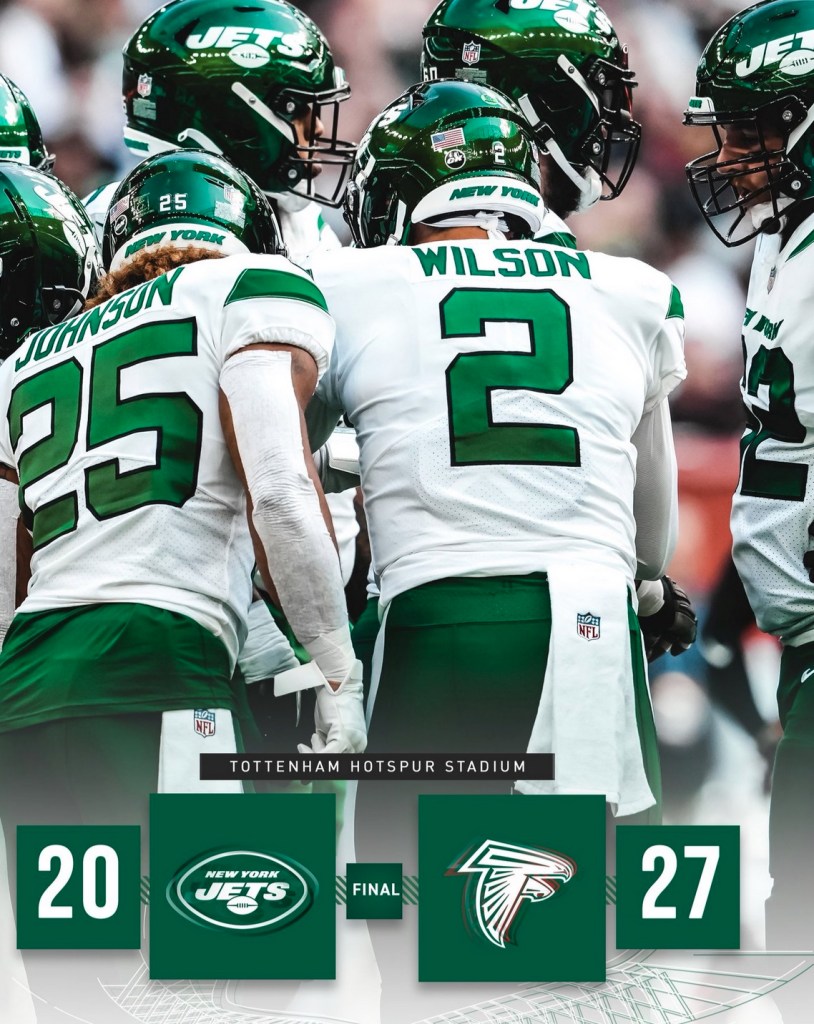 The Jets made things interesting in the second half after falling behind by 17 points early, but the Falcons came away with a 27-20 win in front of 60,057 fans at Tottenham Hotspur Stadium. The Jets fell to 1-4 and now have a bye week.
