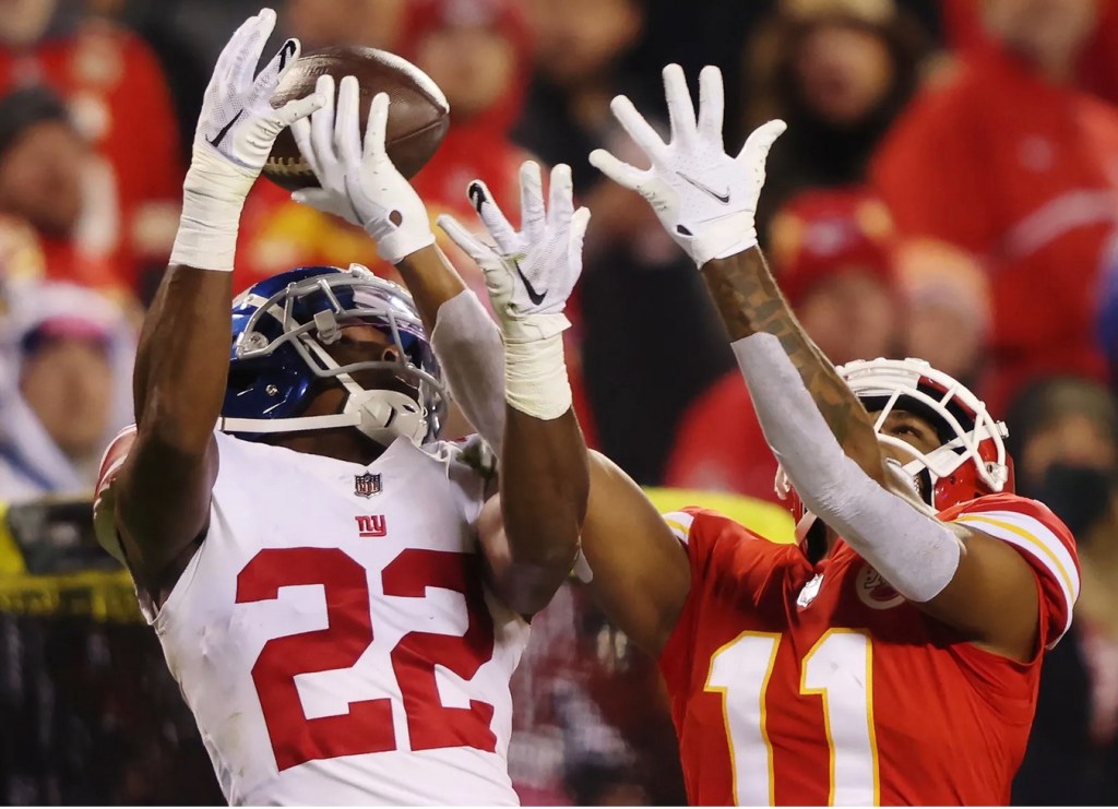 Patrick Mahomes was 29 for 48 for 275 yards with a touchdown and an interception. The interception was his league-leading 10th, and he would have thrown another if not for an offside penalty against the Giants that nullified it.
