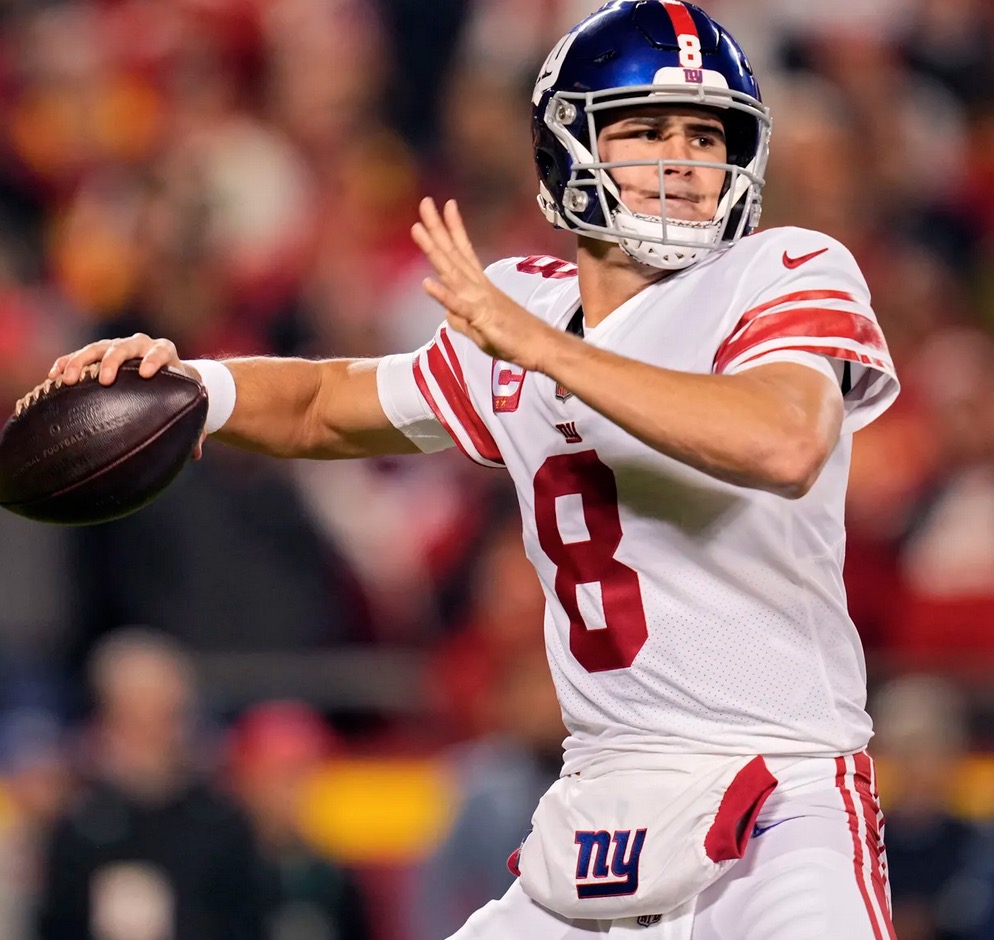New York QB Daniel Jones completed 22 of 32 passes for 222 yards, with two touchdowns and an interception. The Giants dealt with numerous injuries to skill position players before and during the game, but Jones still targeted nine different receivers.