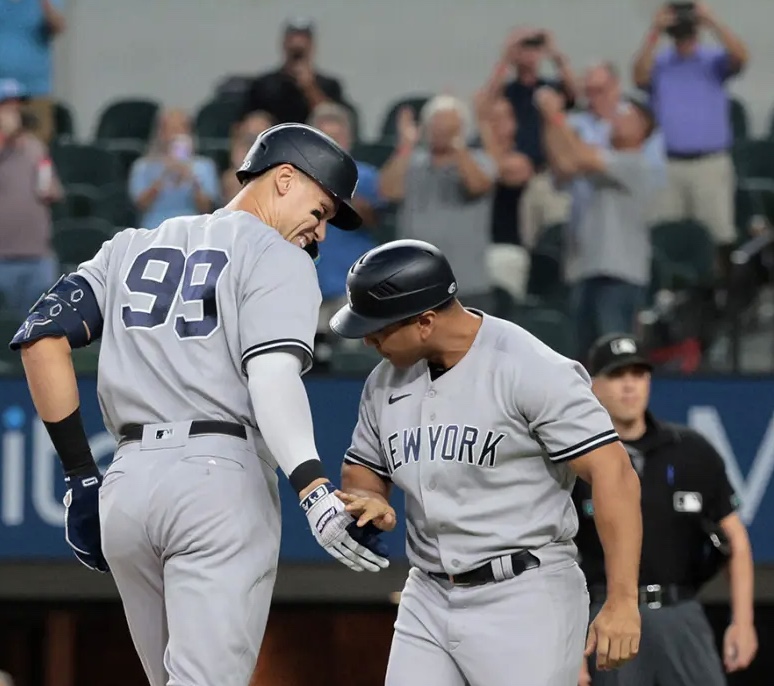 Judge hit a leadoff homer in the first inning of Yankees’ game against the Texas Rangers, giving New York a 1-0 lead in the second game of a doubleheader on Tuesday.