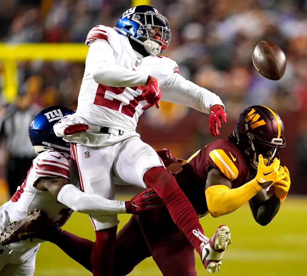 The New York Giants took home a victory over the Washington Commanders on Sunday night but it appeared cornerback Darnay Holmes may have gotten away with a penalty toward the end.