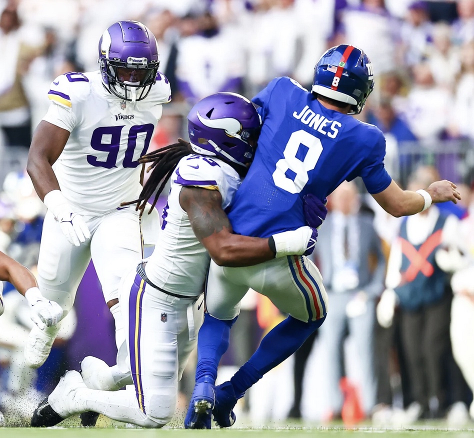 Daniel Jones was 30-for-42 for 334 yards, but it was a struggle all day for the Giants to find points. Kirk Cousins threw three touchdown passes and the Giants had no answers against Jefferson (12-133) and tight end T.J. Hockenson (13-109), who had two scoring catches.