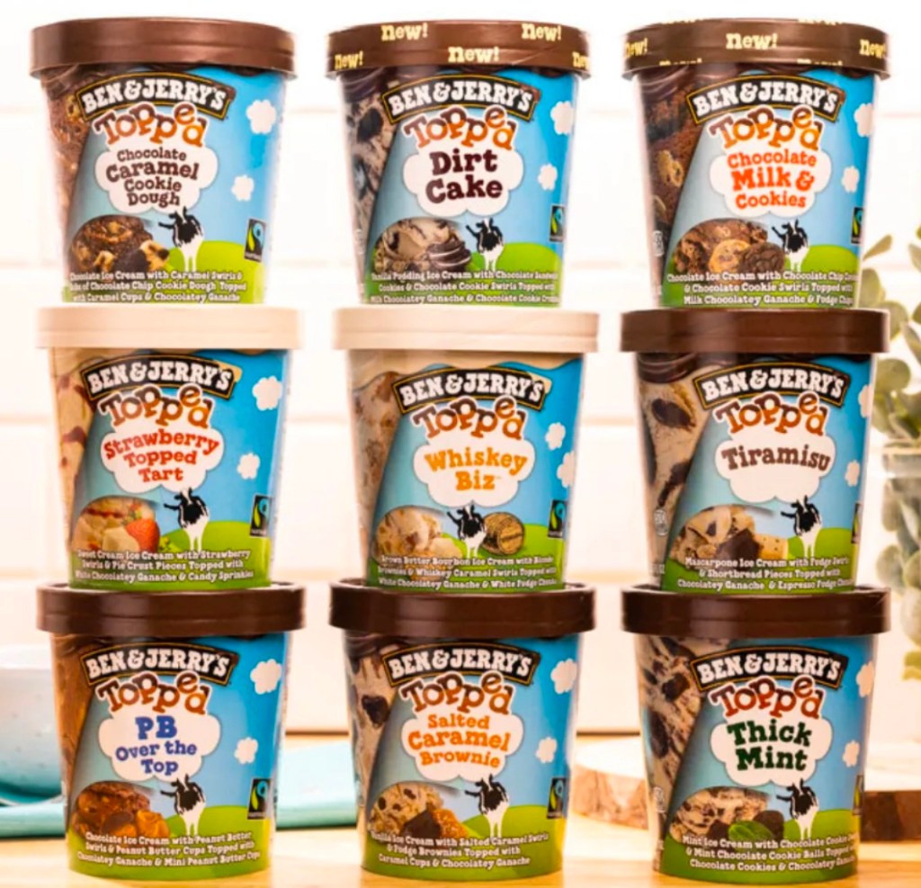 Both new flavors are full-time additions to Ben & Jerry’s Topped offerings and can be found in the freezer aisle at grocery stores.