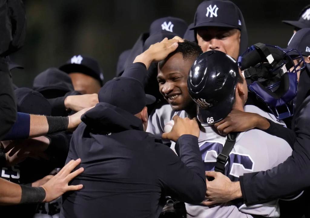 German’s final offering in a six-pitch ninth inning was grounded to third base, where Josh Donaldson fielded it cleanly and fired to first before the Yankees mobbed German near the mound.