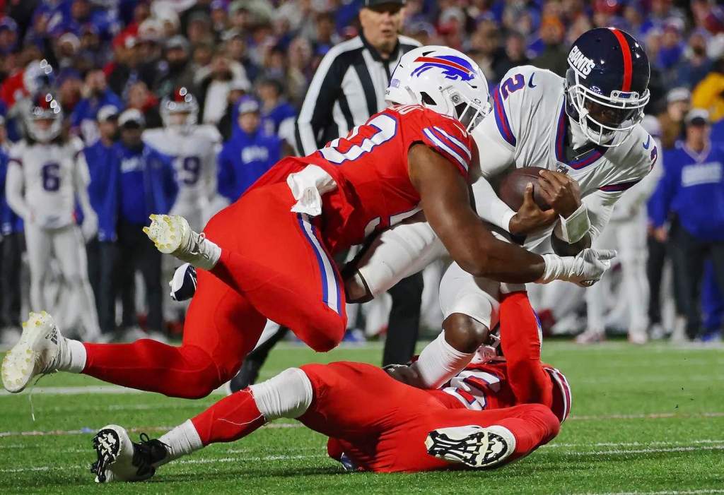 The win, however, nearly fell apart on the final play. After the Giants got all the way down to the one-yard line after drawing a pass interference at the end zone, the Bills broke up a pass on the final untimed down to sneak out the five-point win.