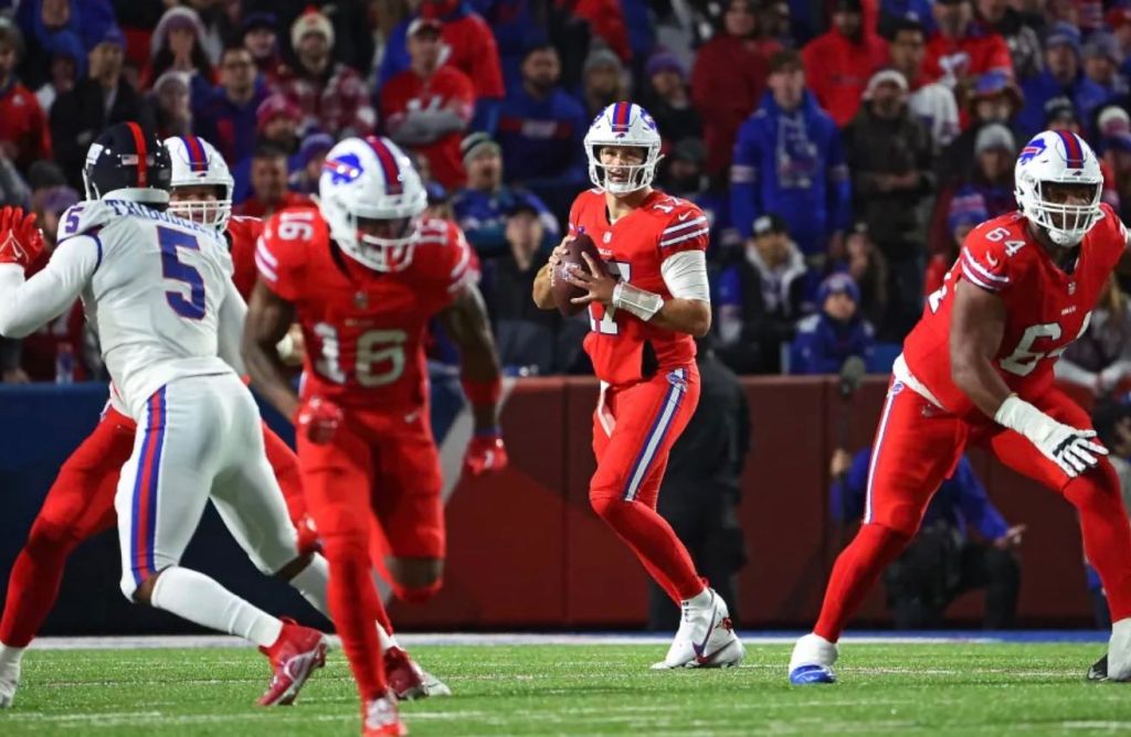 Josh Allen finished throwing 19-of-30 for 169 yards with two touchdowns and an interception in the win for Buffalo. James Cook had 71 yards on 14 carries on the ground, and Stefon Diggs had 100 receiving yards on 10 catches.