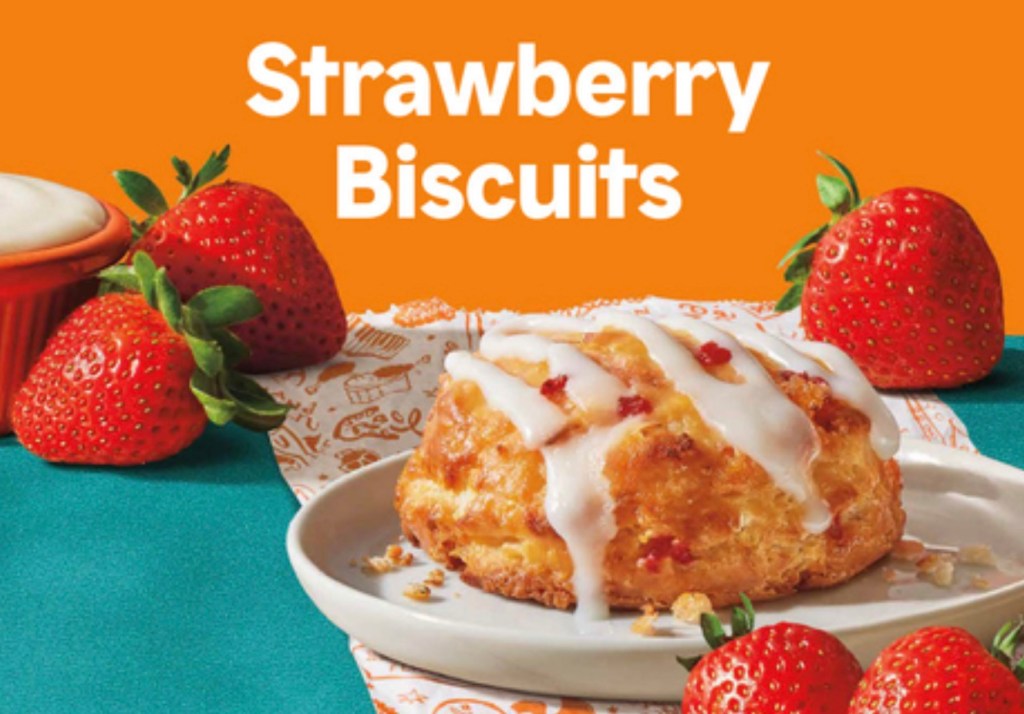 Strawberry Biscuits can be enjoyed on their own for a suggested price of $1.79 each or you can opt for a deal with two biscuits for $2.99 or four biscuits for $5.39.