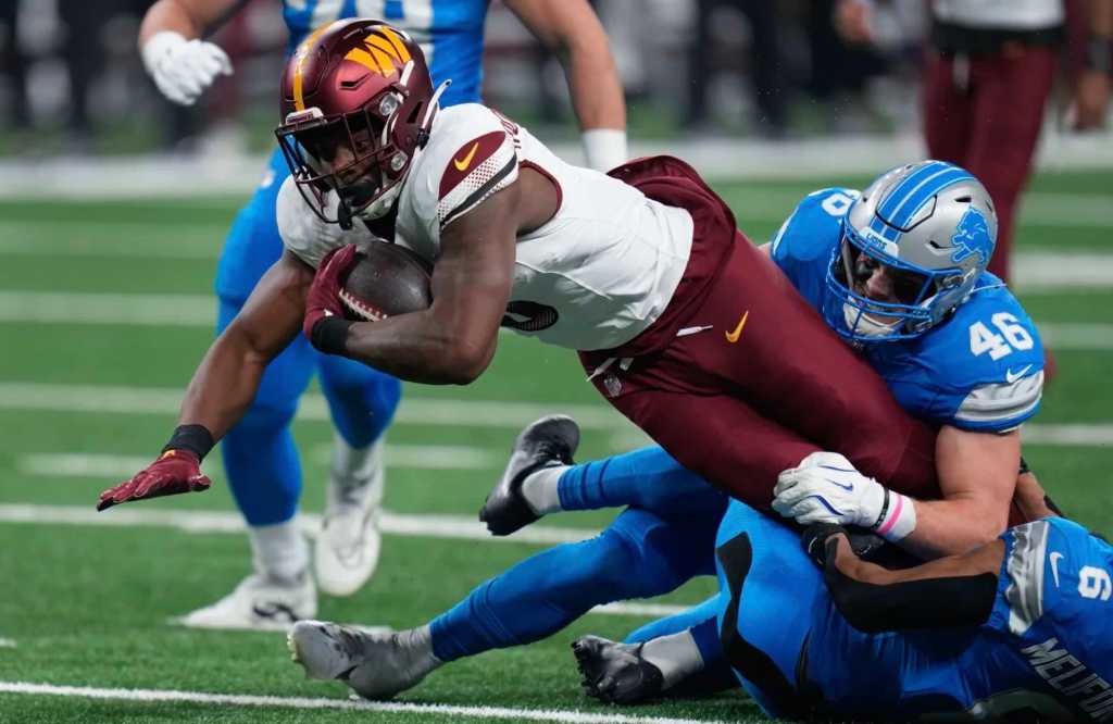 The Lions turned the ball four times, including a fumble and pick-six from Jared Goff and a trick play that ended with a season-crushing Jameson Williams interception, as Jayden Daniels and the Commanders silenced the Ford Field crowd in a shocking 45-31 upset.