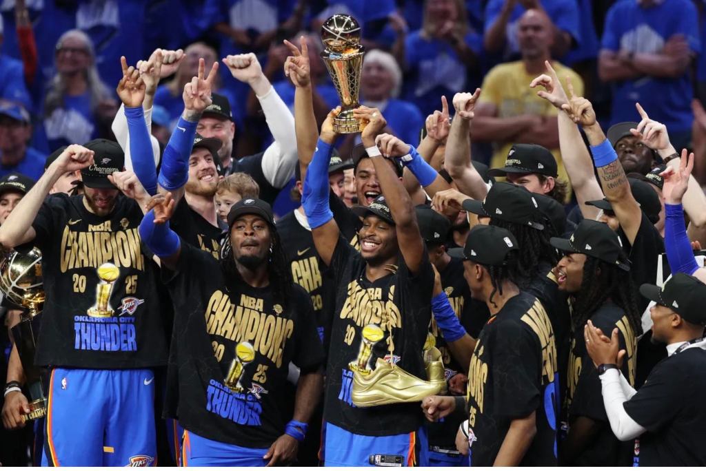 The win caps a brilliant season in which the Thunder posted a league-best 68 wins and Shai Gilgeous-Alexander was named league MVP for the first time. Gilgeous-Alexander powered the Thunder effort Sunday night to put away a Pacers team that pushed them to the brink.