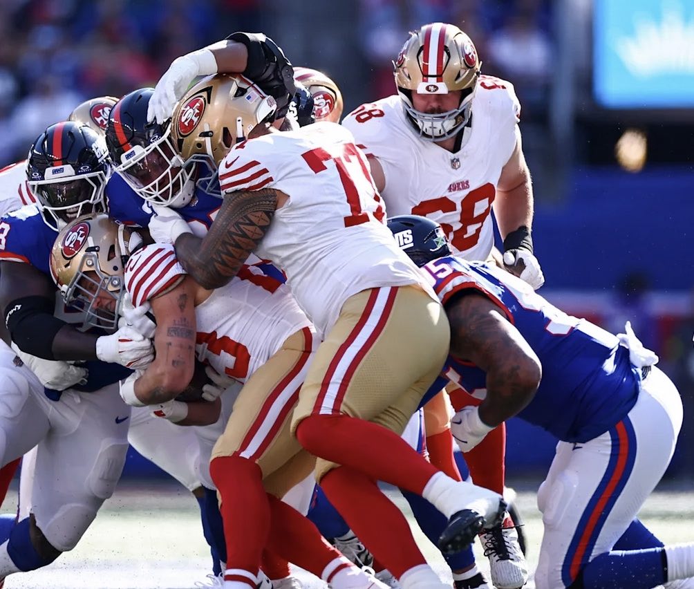 Big Blue got off to a good start, driving for a touchdown on its opening possession with Jaxson Dart finding tight end Theo Johnson from 15 yards out. However, the 49ers soon took control with 20 unanswered points, starting on their next possession that ended with a Mac Jones touchdown pass to Christian McCaffrey.