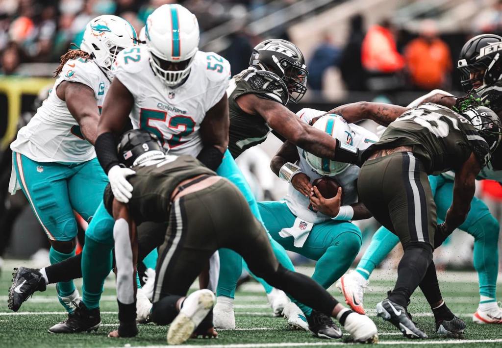 On a cold and cloudy day in East Rutherford, New Jersey, the Jets lost to the Miami Dolphins, 34 – 10 for their 10th loss of the season.