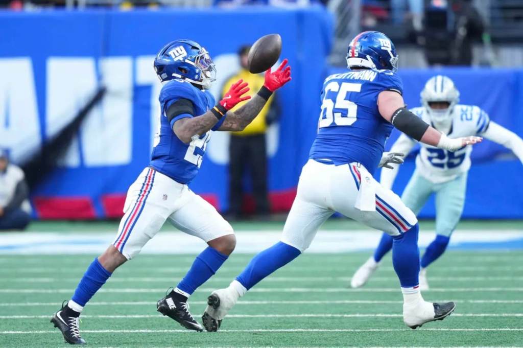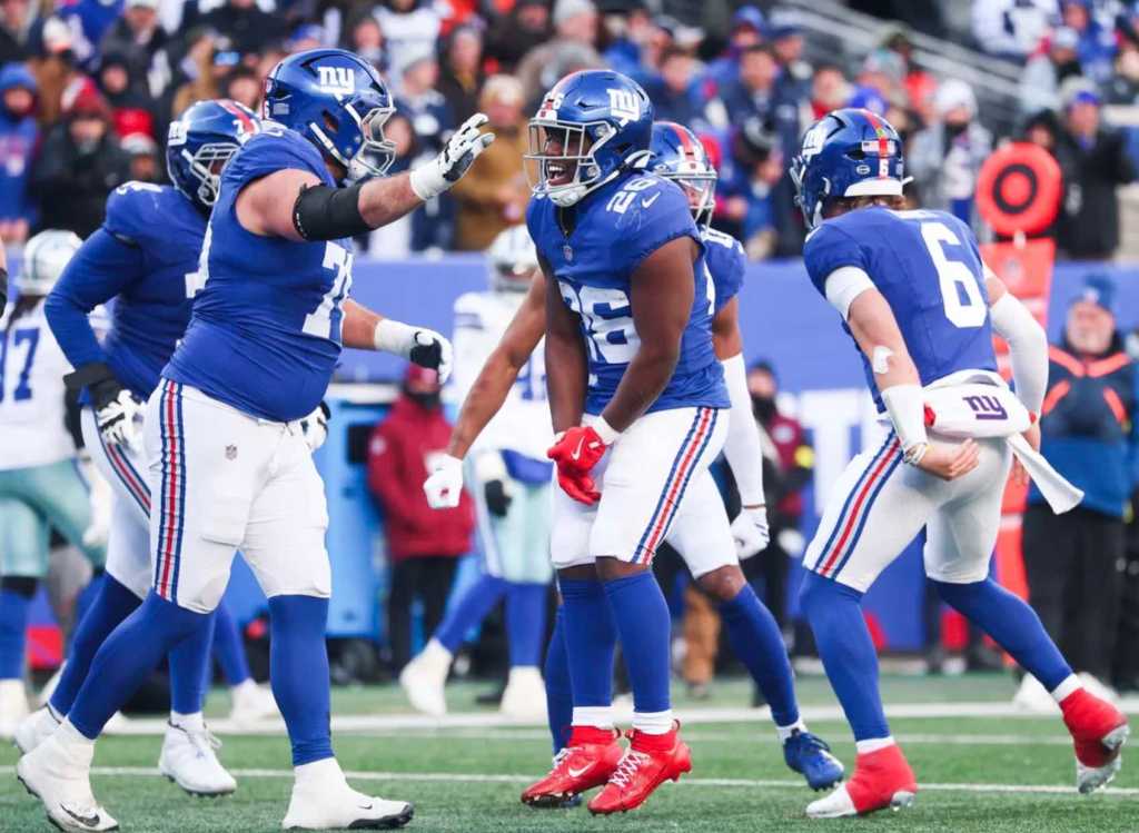 The Giants outgained the Cowboys 380 to 286.Tyrone Tracy rushed for 103 yards, the Giants’ first 100-yard rusher since he did it in Week 10 of the 2024 season.