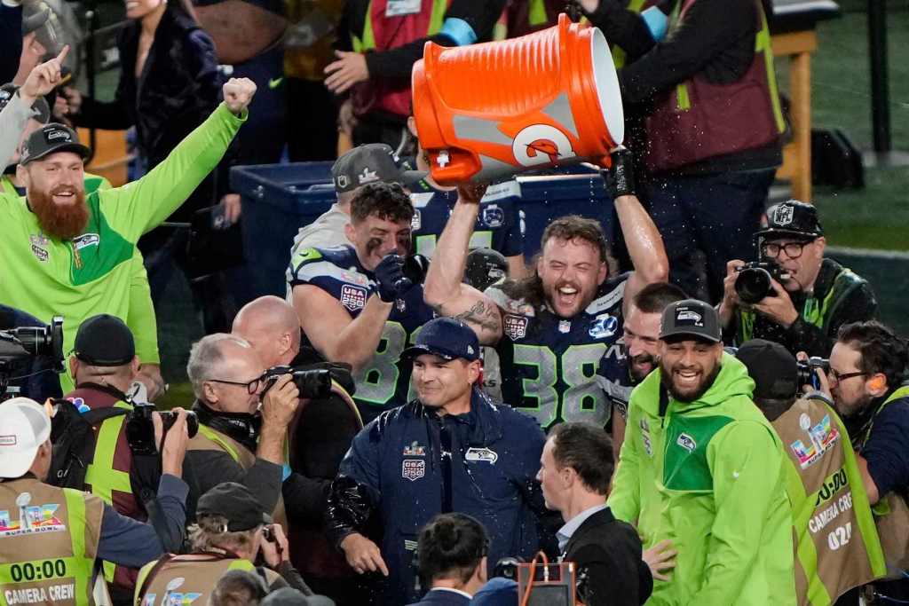 - Seattle’s defense swarmed Patriots’ quarterback Drake Maye all night, causing three turnovers, sacking him six times and returning one interception for a touchdown.