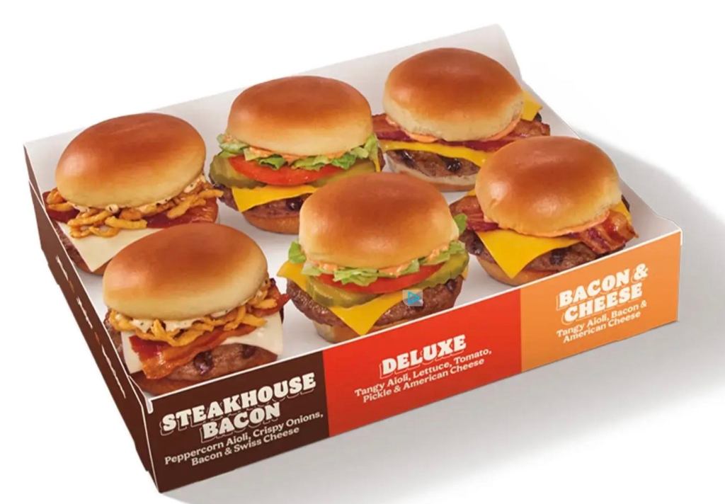 The company said that the new offering is bigger than a slider but smaller than a burger. Guests can build their own box of six king-size sliders, mixing and matching from their choice of three flavors of burgers.